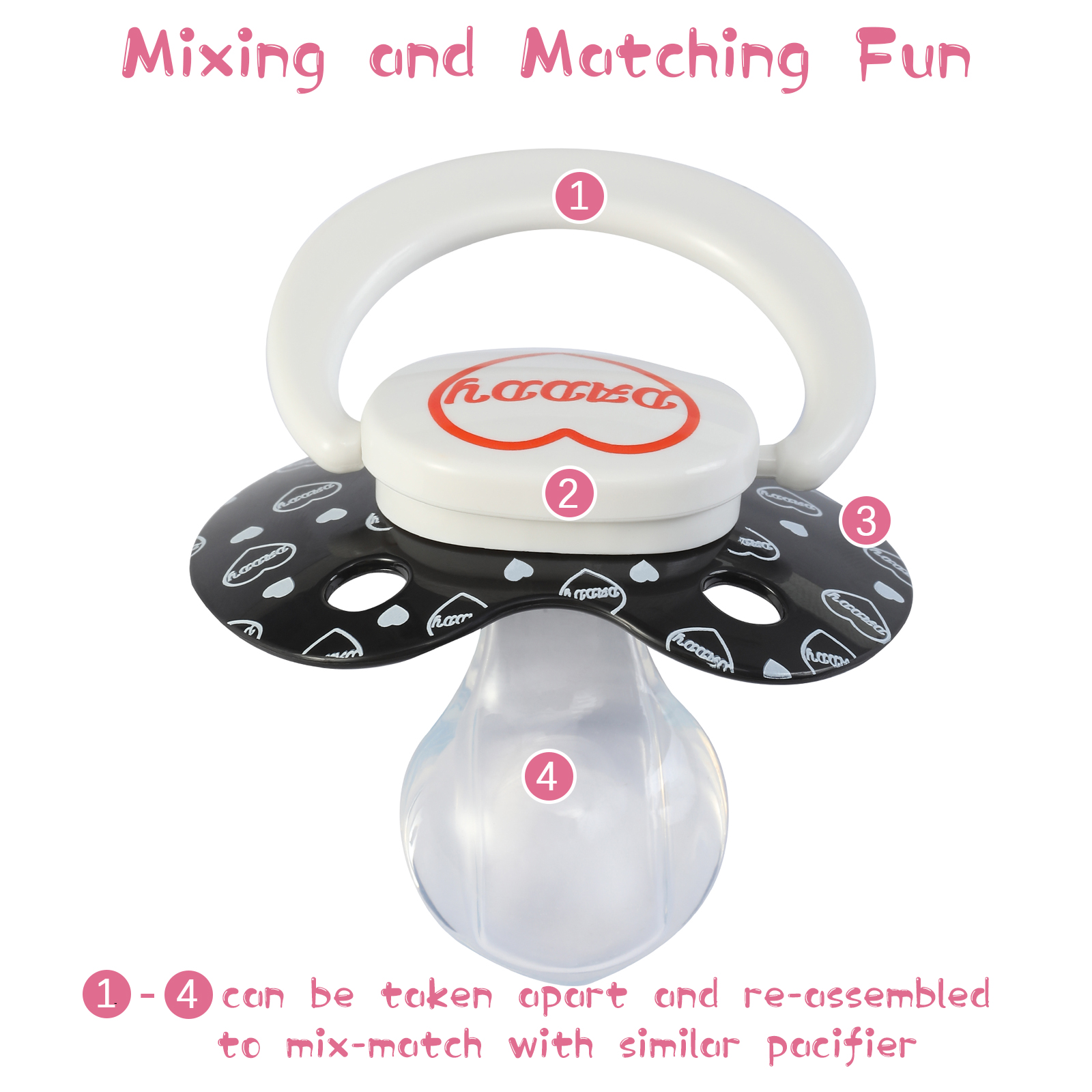 - 【Diy Decorating】This pacifier can be taken apart to mix-match with other pacifier from the same range.